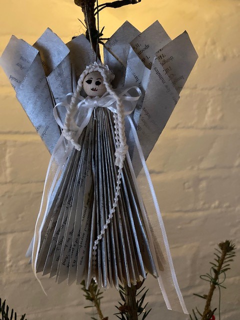 Paper angel by Susan Edwards at Shoreham Art Gallery (https://www.shorehamgallery.co.uk/susan-edwards/).