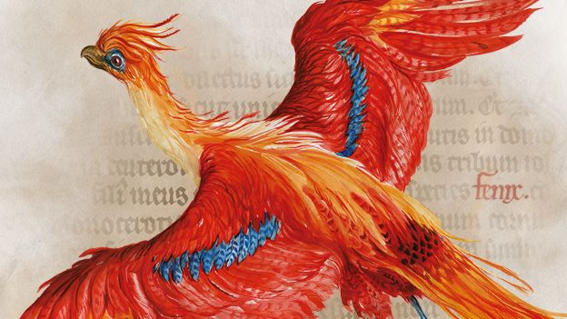 This picture of Fawkes the Phoenix is by Jim Kay. It is one of many illustrations explored in the British Library exhibition.